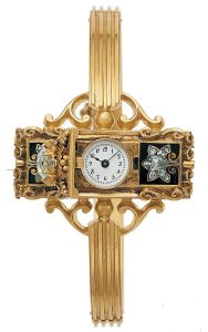 - ویژگی خاص: برخلاف ساعتهای جیبی متداول آن زمان، این ساعت بهطور ویژه برای بستن روی مچ دست بانوان طراحی شده بود.
