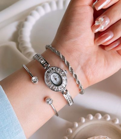 ساعت بند چرم نگین متحرک