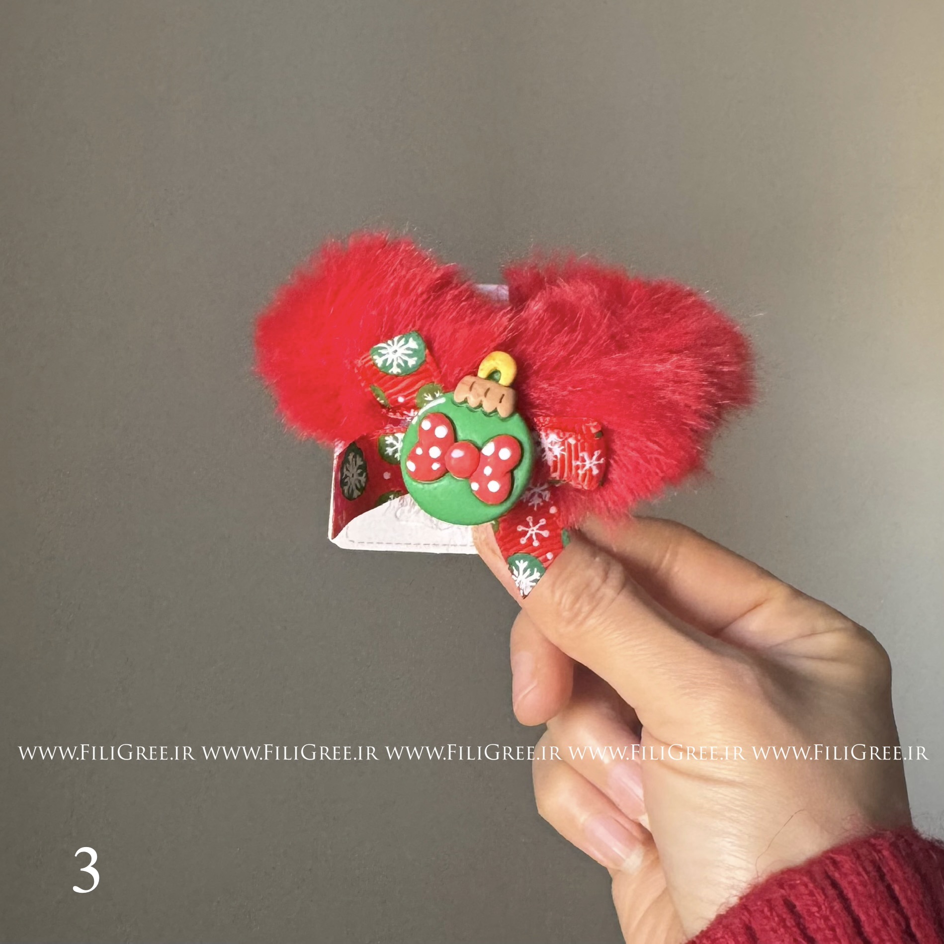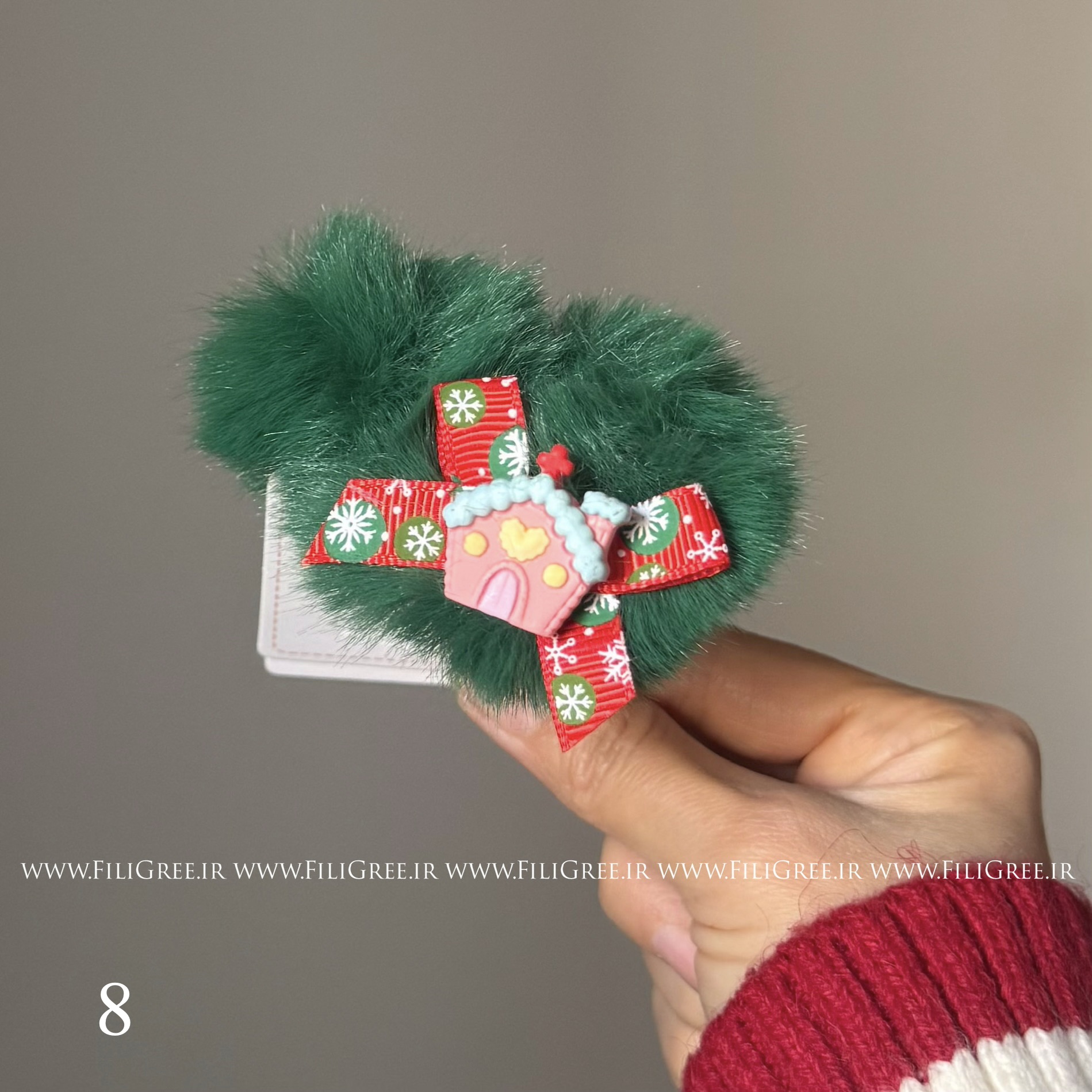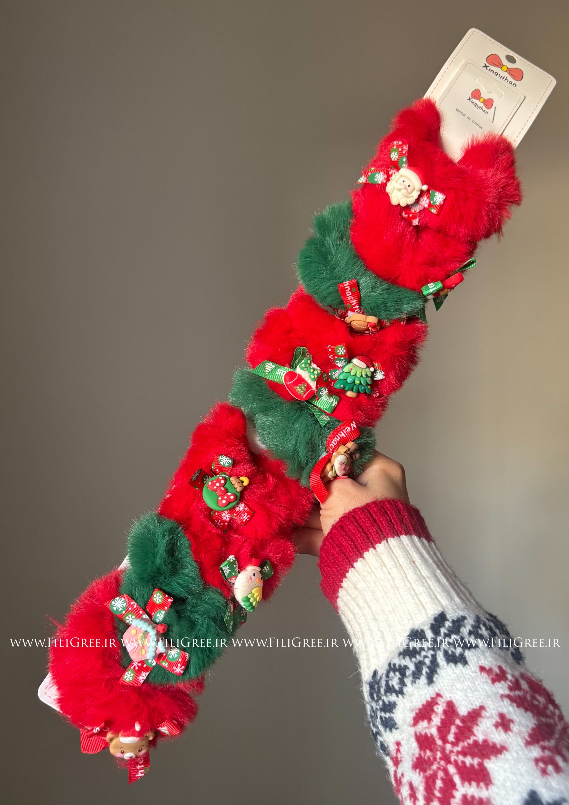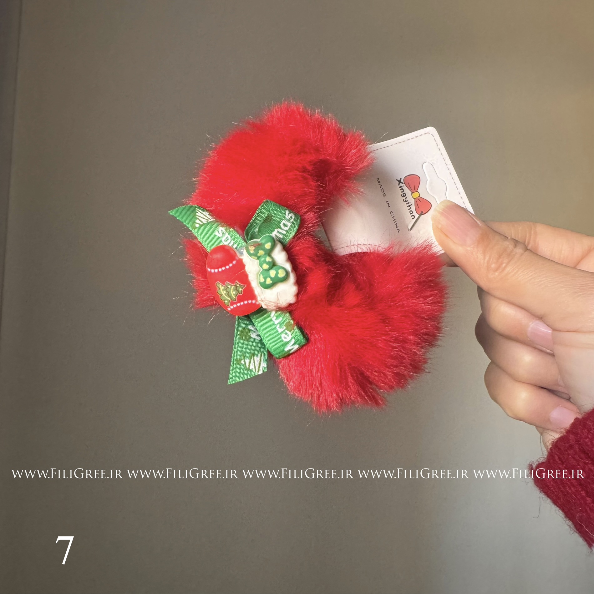 کش موهای کریسمسی مخملی – مدل خزدار فانتزی با آویزهای بامزه